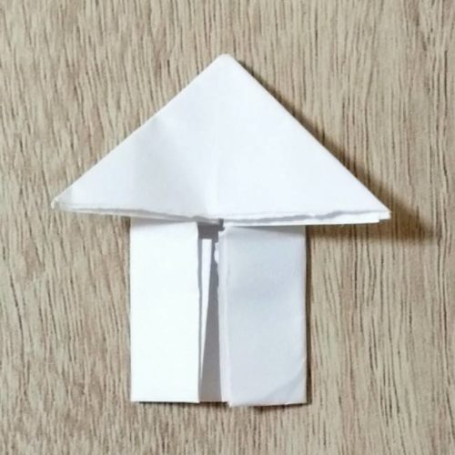 - 半分に折って、さらに真ん中にも折り筋を付けます。